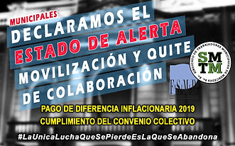 RodrĆguez anunció que por el momento las medidas que decidieron tomar es estar en estado de alerta y movilización, de asambleas permanentes y con quites de colaboración. āEl municipal trabaja, sabemos que hoy lo hace por ejemplo con vehĆculos que no estan en condiciones, pero ante esta situación, a partir de ahora si las condiciones no son favorables, no lo harĆ”nā.